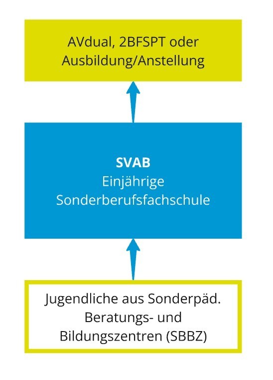 Die SVAB wendet sich an Schüler/-innen von sonderpädagogischen Bildungs- und Beratungszentren (SBBZ) mit der Notwendigkeit eines sonderpädagogischen Bildungsangebotes. Neben in allgemeinen Fächern gewonnen Kenntnissen, haben die Schüler/-innen die Möglichkeit in kleinen Klassen mit individueller Begleitung wesentliche Inhalte der verschiedenen beruflichen Bereiche zu erlangen und sich dadurch auf die Berufswelt vorzubereiten. Über differenzierten Unterricht und eine intensive Betreuung der Schüler/-innen in der Schule, aber auch in den Praktikumsbetrieben, hat die SVAB in den letzten Jahren hervorragende Ergebnisse im Hinblick auf Schulabschlüsse sowie abgeschlossene Ausbildungsverträge erzielen können.